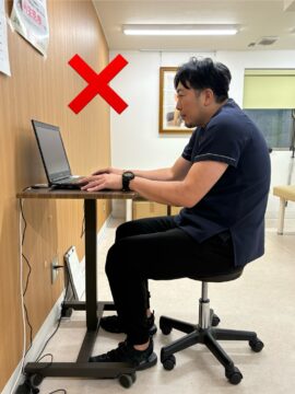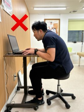 長く良い姿勢を続けることは難しいため、30分〜1時間毎にご自身の姿勢がどうなっているかcheckできると良いと思います。