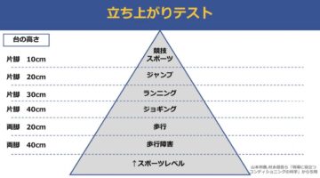 ロコモティブシンドローム(運動機能の低下)の判定やスポーツ復帰など高齢者から子供まで幅広く用いられているためテストになります。ぜひ参考にチャレンジしてみてください。